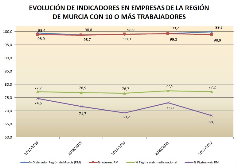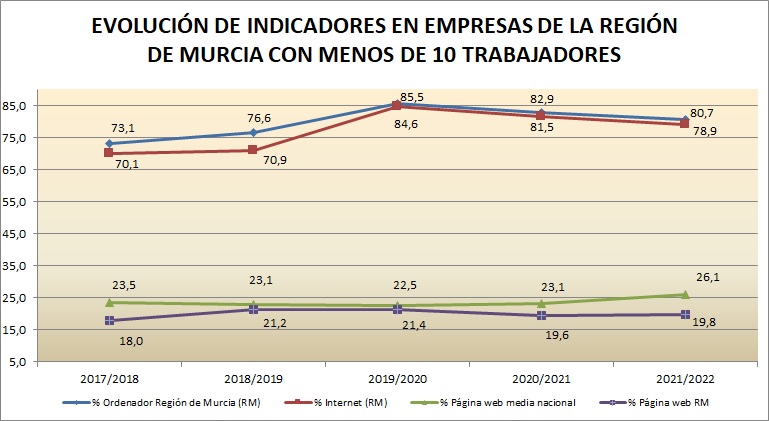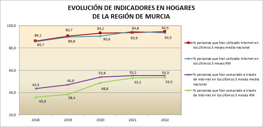 Asimismo en esta web se extraen y analizan los datos de las encuestas que se realizan a nivel nacional por el INE y otras entidades, para medir el avance de la Sociedad de la Información en la Región de Murcia.
